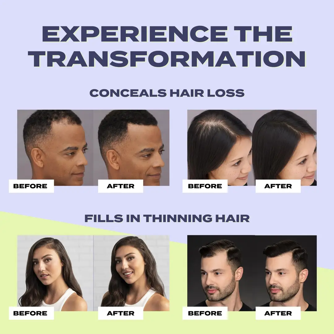 Get the confidence of thicker, fuller hair instantly with Hair Building Fibers the original hair fiber for men and women facing hair thinning. Made from premium keratin protein, these natural hair fibers cling to your existing hair using static electricity, offering instant volume and coverage. Whether you’re trying to conceal bald spots, touch up roots between hair dye sessions, or add volume with a texture powder, delivers a flawless look that lasts.